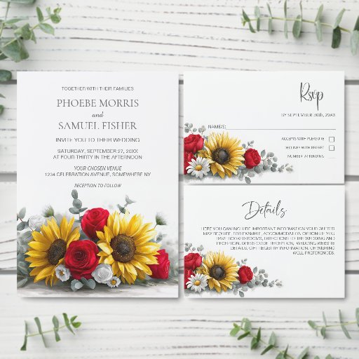 Rustic Sunflower Red Rose Floral Wedding SuiteDesigned by Merry D