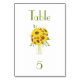 Wedding Table cards with a down home southern appeal, this design features a white background with a sunflower bouquet inside a clear vase. The text is a matching green font. Order yours today!