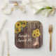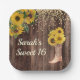 Rustic wood, yellow sunflowers with gold glitter, and a cowboy boot with flowers Sweet 16 birthday party custom paper plates personalized with the name of the guest of honour. Contact us for help with customization or to request matching products.
