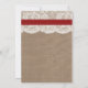 The design features a lovely rustic burlap effect background with a romantic vintage white lace effect trim finished with a stunning sunflower and red ribbon.
