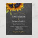 Elegant rustic summer or autumn fall wedding stylish budget affordable invitation template on dark grey charcoal chalkboard featuring a beautiful sunflowers bouquet. +++++++++ Easy to personalize with your details. ++++++++++++++ The invitation is suitable for elegant rustic country farmhouse or barn outdoor weddings. ++++++++++ PLEASE READ THIS BEFORE PURCHASING! This is a budget affordable wedding card printed on a paper sheet (each sheet has one card). ++++ For the best rapport price-quality, our advice is to choose the Semi-Gloss paper type (it is thick enough to be used for stationery) ++++ If you need envelopes, choose the ENVELOPE OPTION. +++ Double-check all the information and spelling of your text because you will receive exactly what you see - no one else will check anything before printing. ++++ This card is designed for size 4.5" x 5.6". In the case you choose another size of the card and text goes outside page, everything needs to be fixed before adding the product to cart. Please ask Live Design Service for help.
