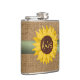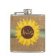 Rustic garden sunflower over green banner and burlap. Customize with your monogram initials.