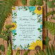 Rustic country birthday invitation featuring vibrant sunflowers, traditional white daisies and teal flowers against a light aqua background with baby's breath and botanical greenery accents