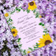 Rustic country bridal shower invitation featuring vibrant sunflowers, traditional white daisies and colourful purple flowers against a light purple background with baby's breath and botanical greenery accents