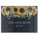Add rustic charm to your kitchen with this elegant sunflower and eucalyptus cutting board. Customize with your family name and monogram. Suitable for nature lovers!