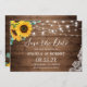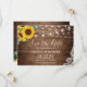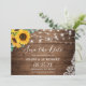 Rustic Wood Sunflower Eucalyptus Floral String Lights Wedding Save the Date Card.