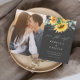 A rustic fall floral photo wedding save the date with watercolor sunflower and eucalyptus bouquet. Click the edit button to customize this design.