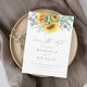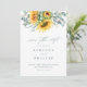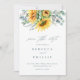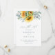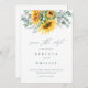 A rustic fall floral wedding save the date with watercolor sunflower and eucalyptus bouquet. Click the edit button to customize this design.