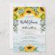 Rustic and beautiful! This bridal shower invitation has a light blue barn wood background with sunflowers and eucalyptus greenery. Perfect for country, barn, field or outdoor weddings. Add your party details to personalize. See coordinating items in our shop, Enchated Finch.