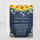 Rustic Sunflower Floral Blue Wood Jar Lights Lace Invitation