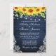 Rustic Blue Wood Lace Lights Watercolor Sunflower Floral and Greenery Wedding Invitation