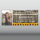 Rustic graduation banner design with sunflowers, string lights, and a wood background. Features a customizable photo area and text for name, school, and class year. Perfect for outdoor, country, or summer graduation celebrations.