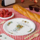 I was honestly hoping the plate would be a little sturdier for the price. As far as the image goes, it is just lovely. I had a hard time deciding between square and round, but went with the square because the design fit better. If the round plate’s design would have a more rounded edge at the sides of the plate, I would have taken that one…only because it is so much easier to find round charger plates or mats to go underneath. My opinion only!