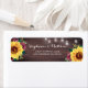 These address labels feature a rustic sunflower and burgundy floral design with a wood grain background and mason jar string lights . Use them on your wedding invitation envelopes. Personalize these labels by adding your own address. These labels are part of a collection which includes matching wedding stationery and gifts. Please visit our store to see the full range of products that you can personalize for your wedding.