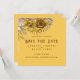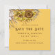Rustic Sunflowers and pampas grass arrangement on a bold mustard yellow background. Corner arrangement of watercolor and line-drawn ink sunflower motif adorns the upper corner.