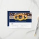 Custom navy blue RSVP card features sunflower flowers, eucalyptus and baby's breath on a navy blue burlap, lace and wood background topping your desired response date and custom accept and decline wording. Matching items available.