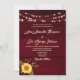 Embrace the rustic charm and bohemian allure of your love story with our elegant country-inspired wedding invitation. Crafted on rustic wood-textured burgundy paper, adorned with delicate botanical accents and the vibrant energy of sunflowers, it's a celebration of natural beauty and timeless romance. Twinkling string lights add a touch of enchantment, while a QR code seamlessly connects guests to your wedding website and RSVP portal, ensuring convenience and efficiency. Complete with a customizable photo capturing your unique bond, this invitation sets the stage for a day filled with love, laughter, and unforgettable moments amidst the rustic splendour of nature.