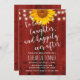 Rustic Sunflower & String Lights Red Barn Wedding Rehearsal Dinner Invitations.