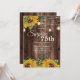 Rustic wood, yellow sunflowers with greenery, and sparkling string lights and lanterns Surprise 75th birthday party invitation for women. Contact us for help with customization or to request matching products.