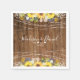 Rustic Sunflower String Lights Wedding Napkin. This design features pretty sunflowers against a rustic wood background with sparkling string lights. Personalize this custom design with bride and groom name, and wedding date.