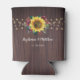 Rustic Sunflower String Lights Wood Wedding Can Cooler