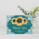 Thank your guest for sharing in your special day with these elegant and romantic teal rustic sunflower wedding thank you cards. Matching items available.