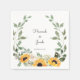 These rustic sunflower wedding napkins are perfect for a late summer or fall wedding reception. Coordinating napkins compliment your wedding reception, rehearsal dinner, or bridal shower. These plates feature watercolor sunflowers, baby's breath, greenery and eucalyptus in the colour yellow, white and sage green. This pretty colour palette is perfect for a garden wedding. Make this plate your own by including your names and all of your wedding date. For further personalization, please click the "customize further" link and use our design tool to modify this template.