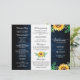 Elegant and modern rustic country tri-fold wedding program features bright yellow sunflower blossoms and baby's breath / gypsophila floral frame with leaves on navy blue barn wood background. Please find more matching designs and variations from my "blissweddingpaperie" store. And feel free to contact me for further customization or matching items.