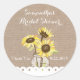 This elegant sticker is ideal to celebrate a Bridal Shower with a rustic theme. It features sunflowers in a mason jar on a burlap texture background. The scallop edge at the bottom adds a chic vintage look. Use it for party favours or to seal envelopes. Add your own party details.