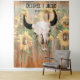 Rustic Sunflowers Bull Skull Western Photobooth Tapestry