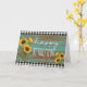 A teal wood rustic yellow sunflowers happy retirement card for her that you can easily personalize on the inside card message.
