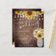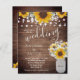 This affordable wedding design features a mason jar vase filled with sunflowers and baby's breath on a rustic wood background with string lights. Click the customize button for more flexibility in modifying the text. Variations of this design, different paper types, as well as coordinating products are available in our shop, zazzle.com/store/doodlelulu. Contact us if you need this design applied to a specific product to create your own unique matching item! Thank you so much for viewing a DoodleLulu by 2 june bugs design!