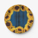 Rustic Sunflowers Navy Blue Barn Wood Paper Plate