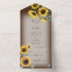 Your wedding day is a celebration of love, joy, and the beauty of nature's golden treasures. This All-in-One wedding invitation showcases the radiant charm of sunflowers on a rustic faded brown background, creating an invitation that embodies warmth, happiness, and casual elegance. The All-in-One wedding invitations are both beautiful and practical by combining the wedding invitation with an easy to remove perforated RSVP postcard. They are also quick and easy to prepare for mailing. Simply address the invitation, fold the back flap and seal with the included clear stickers. Once your guests receive the pre-addressed invitation they simply tear off the perforated RSVP card and drop it in the mail. The addition of the QR code allows your guests to easily access your wedding website for information including reception details and dinner choices!