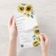 Your wedding day is a celebration of love, joy, and the beauty of nature's golden treasures. This All-in-One wedding invitation showcases the radiant charm of sunflowers on a crisp white background, creating an invitation that embodies warmth, happiness, and casual elegance. The All-in-One wedding invitations are both beautiful and practical by combining the wedding invitation with an easy to remove perforated RSVP postcard. They are also quick and easy to prepare for mailing. Simply address the invitation, fold the back flap and seal with the included clear stickers. Once your guests receive the pre-addressed invitation they simply tear off the perforated RSVP card and drop it in the mail. The addition of the QR code allows your guests to easily access your wedding website for information including reception details and dinner choices!