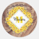 Rustic Sunflowers & Wood Texture Monogram Classic Round Sticker