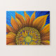 Rustic Sunny Sunflower on Blue Jigsaw Puzzle