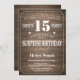 Rustic Surprise 15th Birthday Invitation with Rustic Wood Background. Vintage Retro. Adult Birthday. Male Men or Women Birthday. Kids Boy or Girl Lady Teen Teenage Bday Invite. 13th 15th 16th 18th 20th 21st 30th 40th 50th 60th 70th 80th 90th 100th. Any Age. For further customization, please click the "Customize it" button and use our design tool to modify this template.