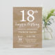 Rustic Surprise 18th Birthday Invitation. Rustic Wood Background. Vintage Retro Birthday. Adult Birthday. Men or Women Bday Invite. 13th 15th 16th 18th 20th 21st 30th 40th 50th 60th 70th 80th 90th 100th, Any age. For further customization, please click the "Customize it" button and use our design tool to modify this template.
