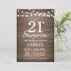 Rustic Surprise 21st Birthday Invitation with String Lights Wood Background. 13th 15th 16th 18th 21st 30th 40th 50th 60th 70th 80th 90th 100th, Any age. For further customization, please click the "Customize it" button and use our design tool to modify this template.