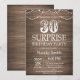 Rustic Surprise 30th Birthday Invitation with Rustic Wood Background. String Lights. Country Vintage Retro. Adult Birthday. Male Men or Women Birthday. For further customization, please click the "Customize it" button and use our design tool to modify this template.