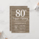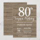 Rustic Surprise 80th Birthday Invitation. Rustic Wood Background. Vintage Retro Birthday. Adult Birthday. Men or Women Bday Invite. 13th 15th 16th 18th 20th 21st 30th 40th 50th 60th 70th 80th 90th 100th, Any age. For further customization, please click the "Customize it" button and use our design tool to modify this template.