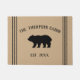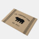 Welcome guests to your abode with this charming rustic farmhouse style doormat that's perfect for your cabin or country house. Personalized design features your family name in rich black lettering, along with your year established and a bear illustration. Rope stripe detailing on a classic tan background completes the design.