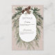 This design features a rustic green pine and pinecone bouquet on a soft beige background with white flowers. It is accented with a white sparkle overlay to illustrate the magic of the beautiful winter holidays. Perfect for a Christmas or winter wedding. This card is part of the Rustic Tan Pine Winter Sparkle Wedding Suite created by Simply Farmhouse Press.