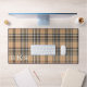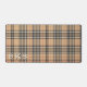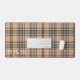 Rustic Tan White & Black Tartan Plaid Monogram Desk Mat