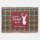 Cute home sweet home Christmas movie watching blanket you can easily customize by clicking the "Personalize" button, Featuring and deer silhouette and clan Buchanan tartan in green, yellow, and red check.