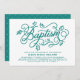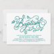 Rustic Teal Foliage Lettering Baptism Invitation | invite family and friends to your child's baptism with this customizable invitation. It featuring rustic lettering with foliage accents and polka dots pattern. This rustic invitation is perfect for any baptism theme.