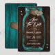 Rustic teal wedding save the date card featuring a mason jar and burlap hearts against a barn wood background adorned with twinkle lights. Easily personalize this romantic rustic teal wedding save the date online. Matching items available to complement this teal wedding save the date card.