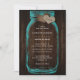 Rustic Teal Mason Jar Wood Hearts Monogram Wedding Invitation