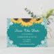Save The Date Mariage de dentelle de tournesol Turquoise rustiqu